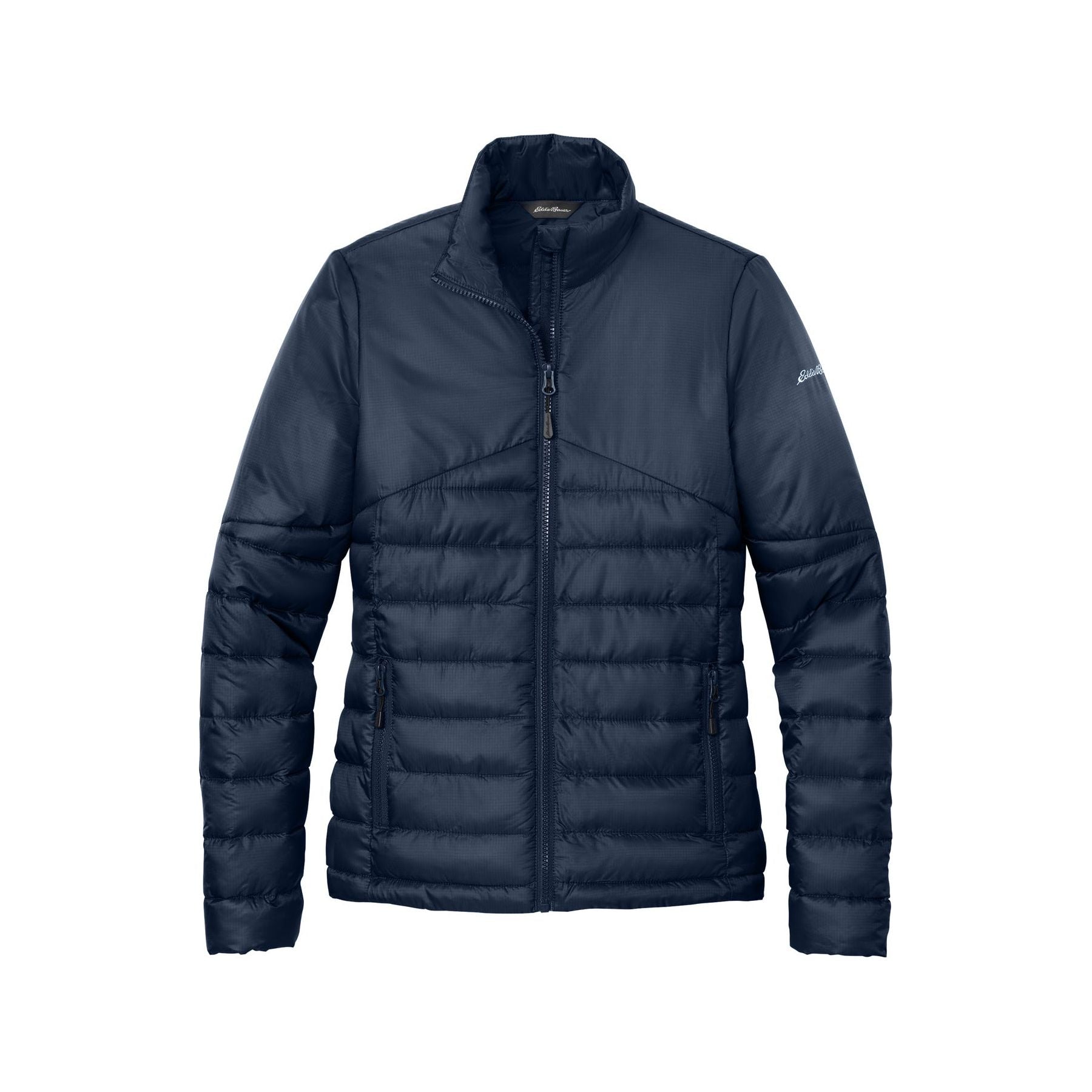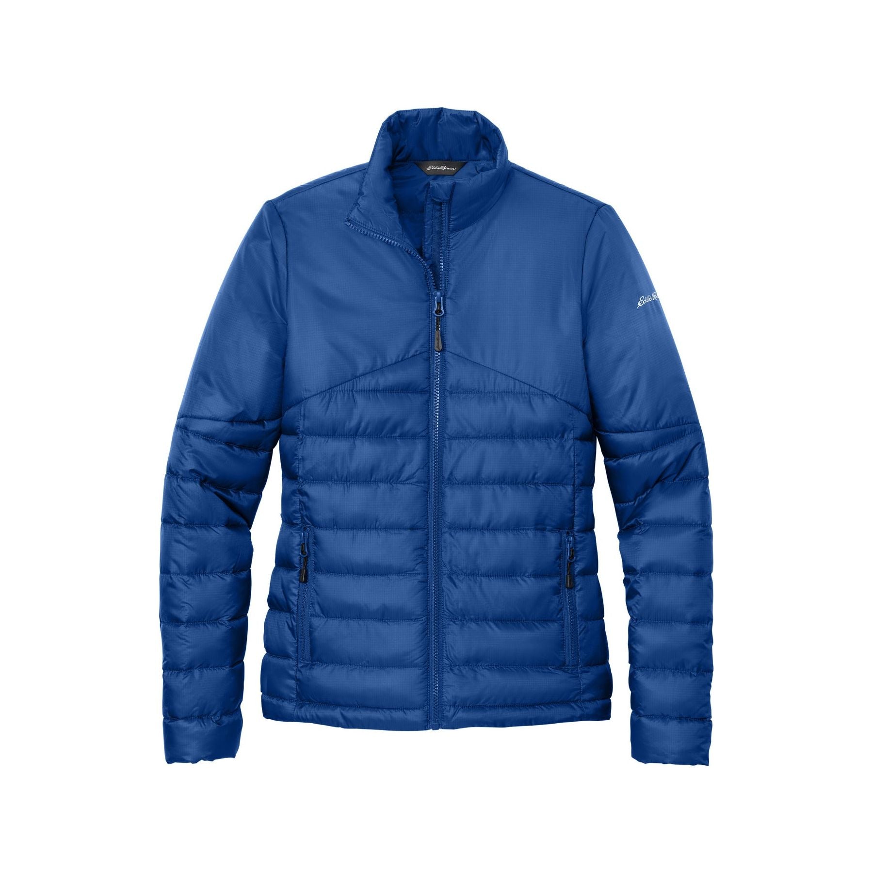 Minimal bulk meets maximized performance in this quilted jacket that is built for your cold-weather adventures. Exposed, molded zippers with Eddie Bauer logo pulls. Zippered hand pockets. Elastic at cuffs. Adjustable locking drawcord hem. Contrast Eddie Bauer heat transfer logo on left sleeve. Made of 100% polyester shell and lining. 4-ounce, 100% polyester fill. Durable water-repellent (DWR) finish.