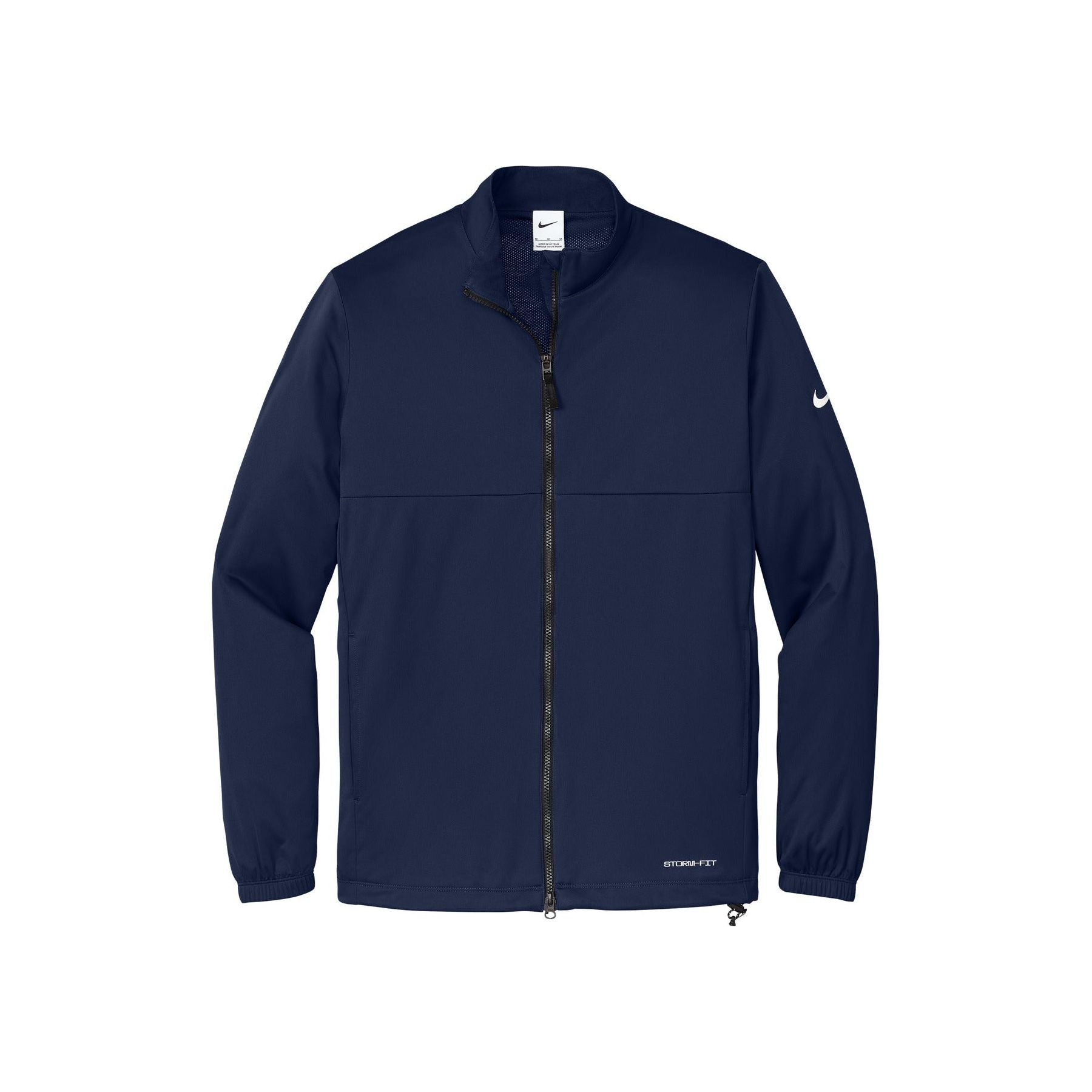 Designed with Storm-FIT technology to shield you from wind and rain, this sporty performance jacket has stretch for movement. Features a zip-through collar, side pockets and elastic cuffs. The contrast heat transfer Swoosh logo is on the left sleeve. A contrast heat transfer Storm-FIT logo is on the left hem. Made of 3.7-ounce, 100% polyester with a durable water-repellent (DWR) coating and mesh lining.